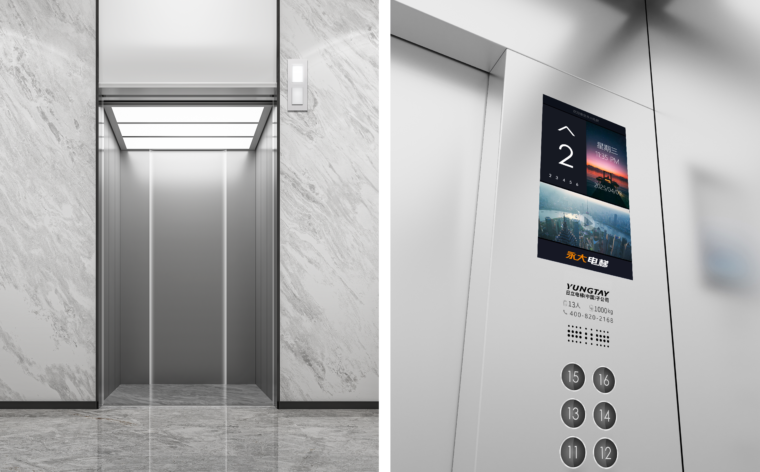 新電梯轎廂空間更加開(kāi)闊,材質(zhì)采用鏡面不銹鋼噴細(xì)砂工藝,質(zhì)感細(xì)膩高級(jí),表面采用抗指紋技術(shù)。整體美觀(guān)度與觸感都顯著優(yōu)于常見(jiàn)的不銹鋼處理工藝。